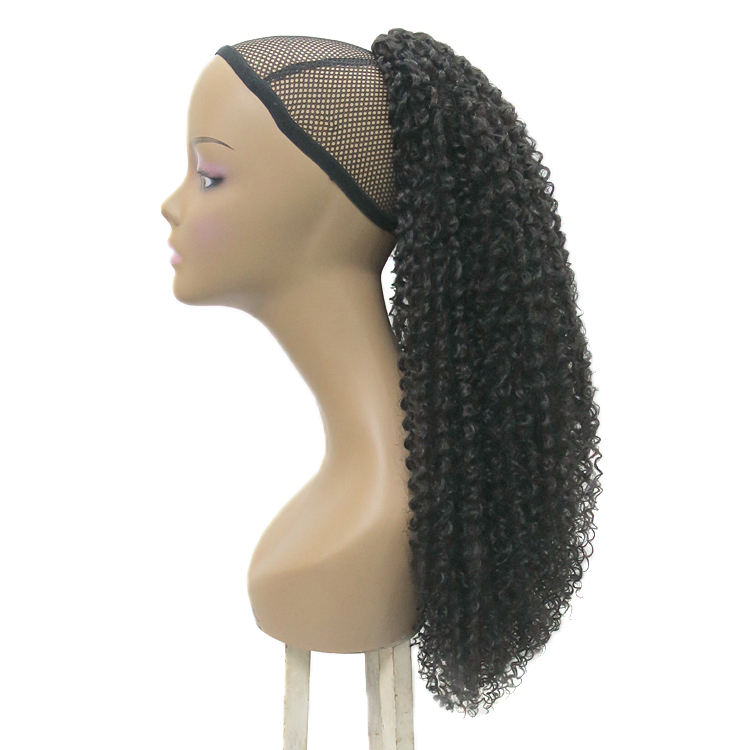 Bulk sale customized synthetic hair Black Ponytail hair Curly-Drawstring Ponytail