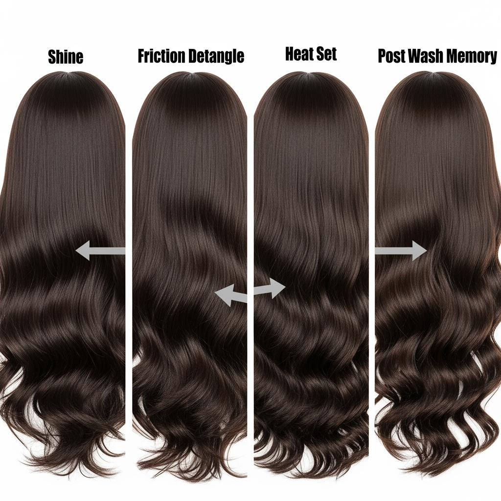 Look for confirmed heat range, realistic luster, curl memory after washing, and low friction-induced tangling. Demand the same behavior across lots, not just one sample.