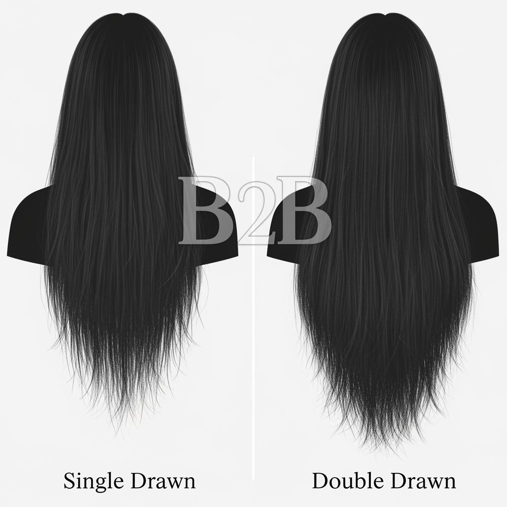 For B2B assortment planning, this difference matters because it affects how the product photographs, how it feels during installation, and how customers perceive value. Double drawn bundles are typically easier to sell as “premium” because the end result looks denser without requiring extra bundles. They’re also easier to standardize in marketing because the silhouette is consistent across models and content shoots.