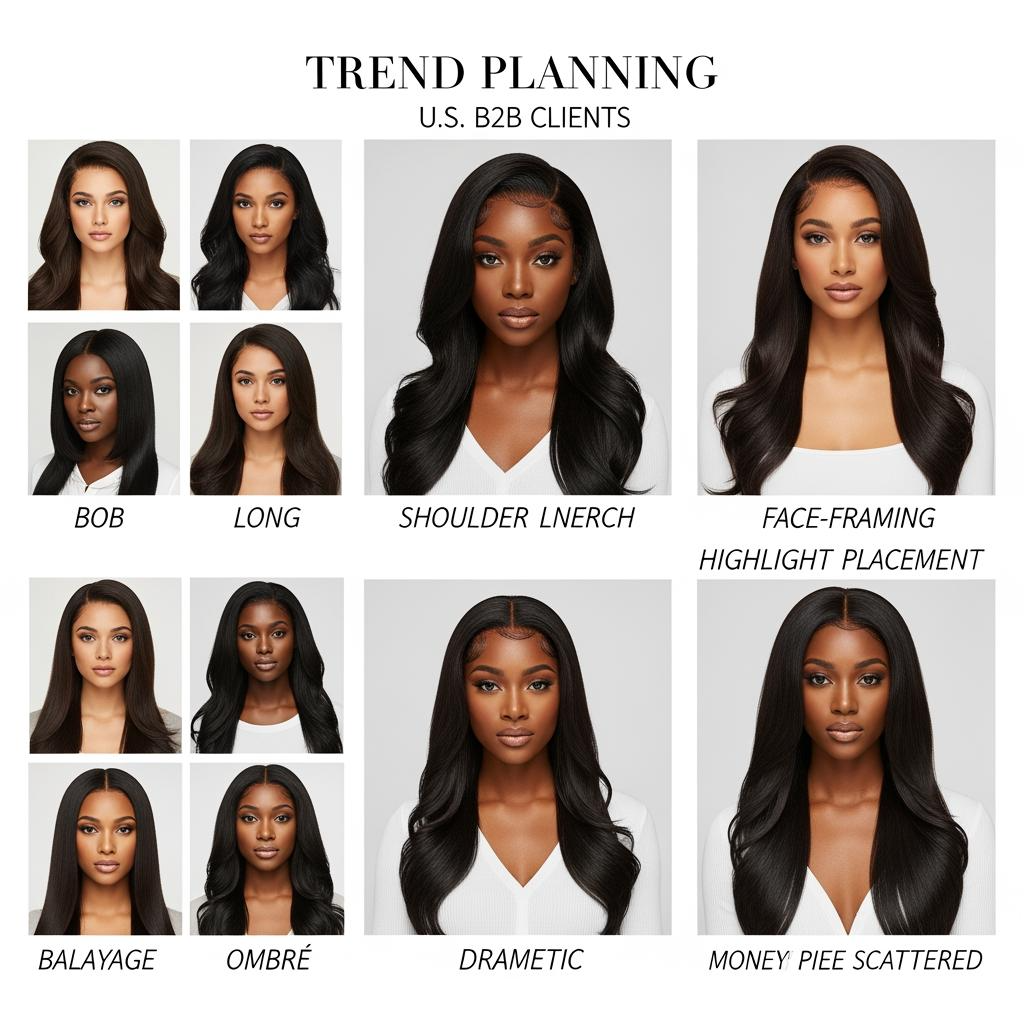 Fashion trends influence silhouettes (length, layers, bangs), textures (sleek vs voluminous), and color direction (natural blends vs high-contrast highlights). For wholesalers, the danger is chasing micro-trends that don’t reorder. The opportunity is building a core program that remains stable while you test trend variants in smaller runs.