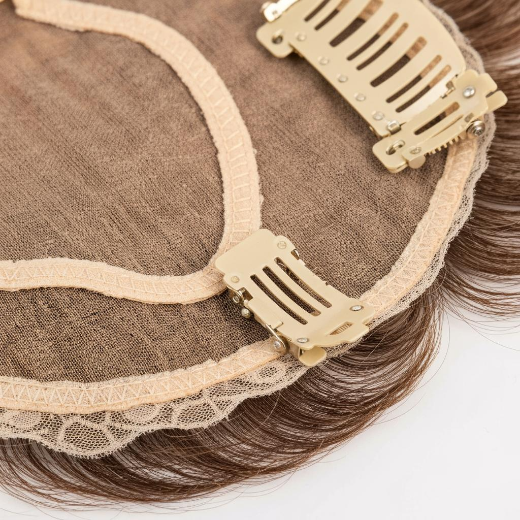Start with the base. A well-designed topper base should balance breathability with structure so it lays flat at the crown without bubbling. The parting area matters even more: realistic scalp effect (through lace, mono, or skin-like material) reduces returns because customers don’t feel they must “style around” the topper to hide it. Clips should be smooth, coated, and positioned to distribute tension; poorly placed clips cause discomfort and create repeat complaints.
